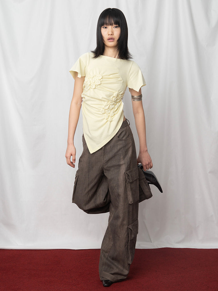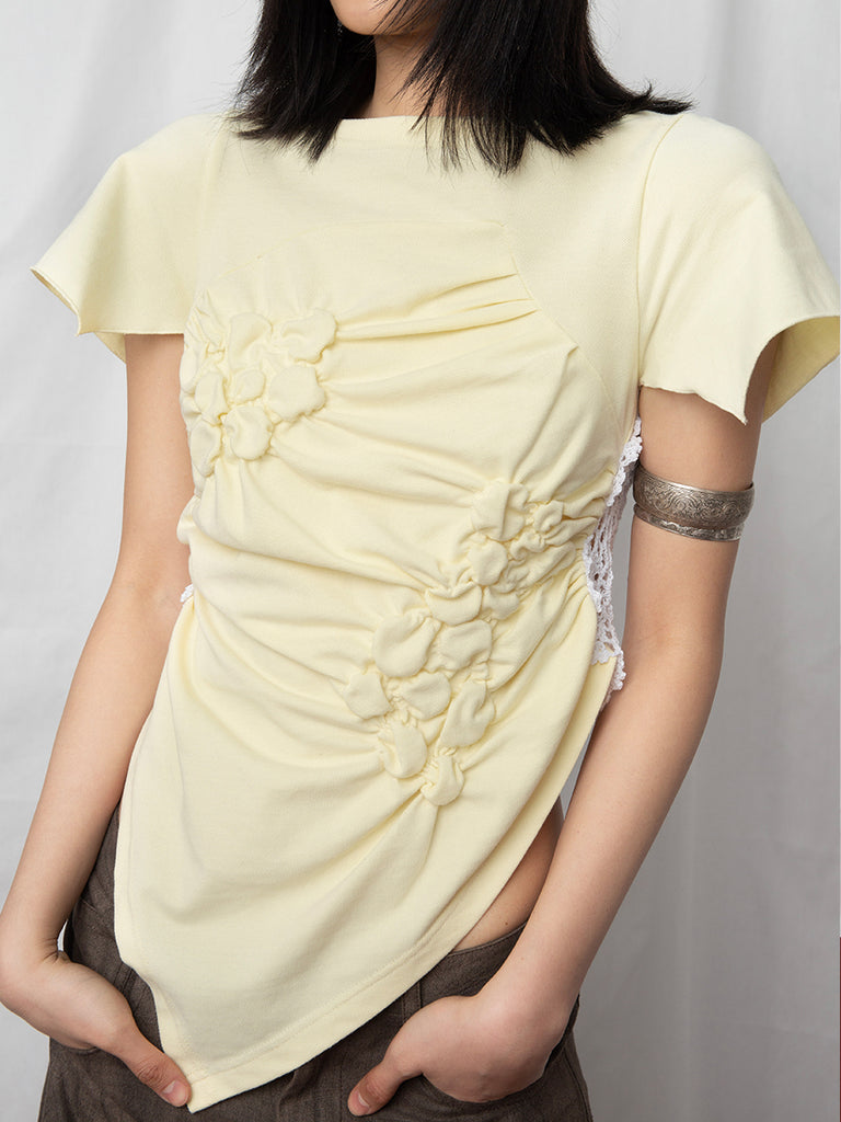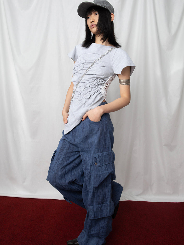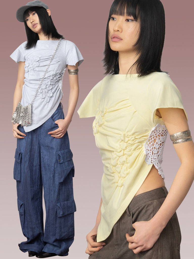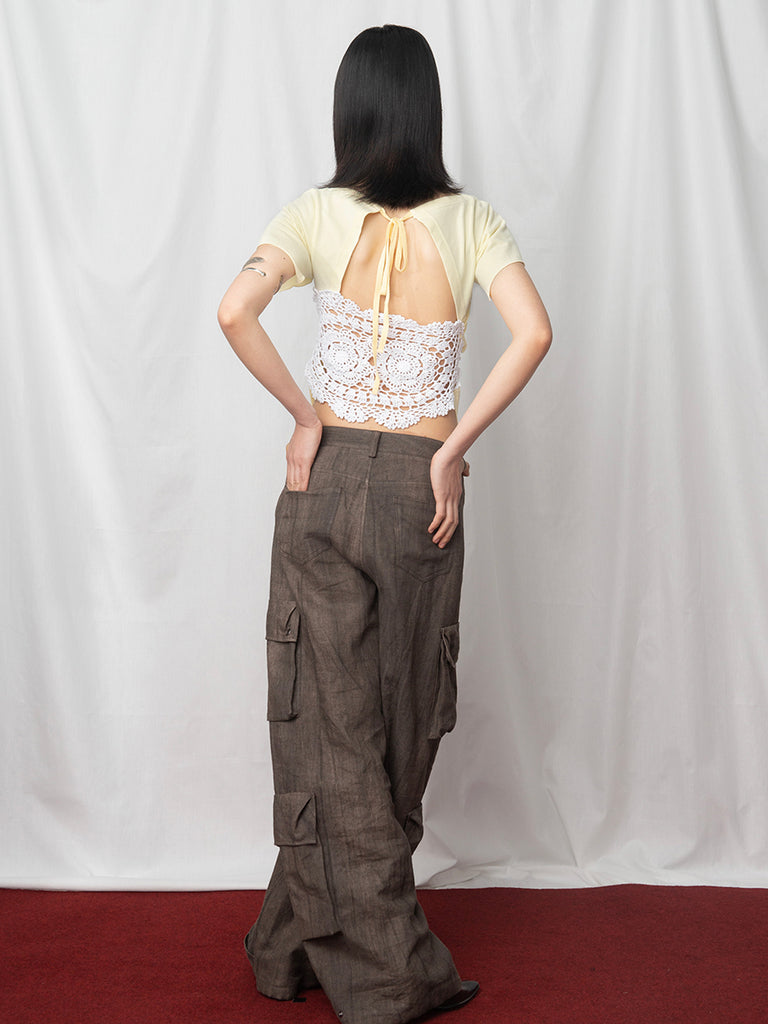 What makes this tee even more special is that the filet crochet fabric used is sourced from dead stock fabric, making each piece sustainable and unique. This thoughtful approach not only preserves the beauty of the past but also reduces environmental impact, creating a garment that's as ethical as it is beautiful.